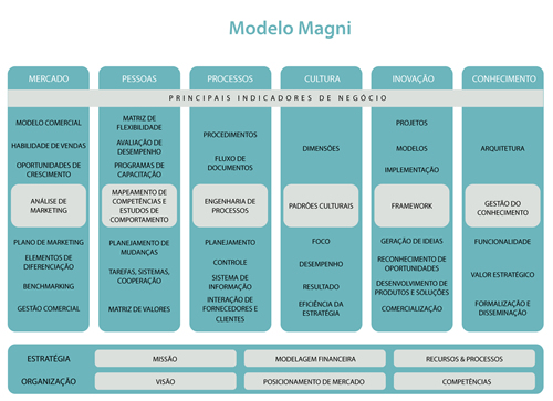 O expertise da Magni em gestão empresarial abrange todos os processos organizacionais, da análise da cultura até a engenharia de processos, passando pela avaliação de sua posição no mercado, por estudos de inovação, pela gestão do conhecimento, e pela construção de equipes de alto desempenho. A Magni entende que somente uma avaliação integrada destes aspectos reflete um cenário realista para a apresentação das soluções necessárias para a obtenção de melhores resultados.